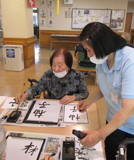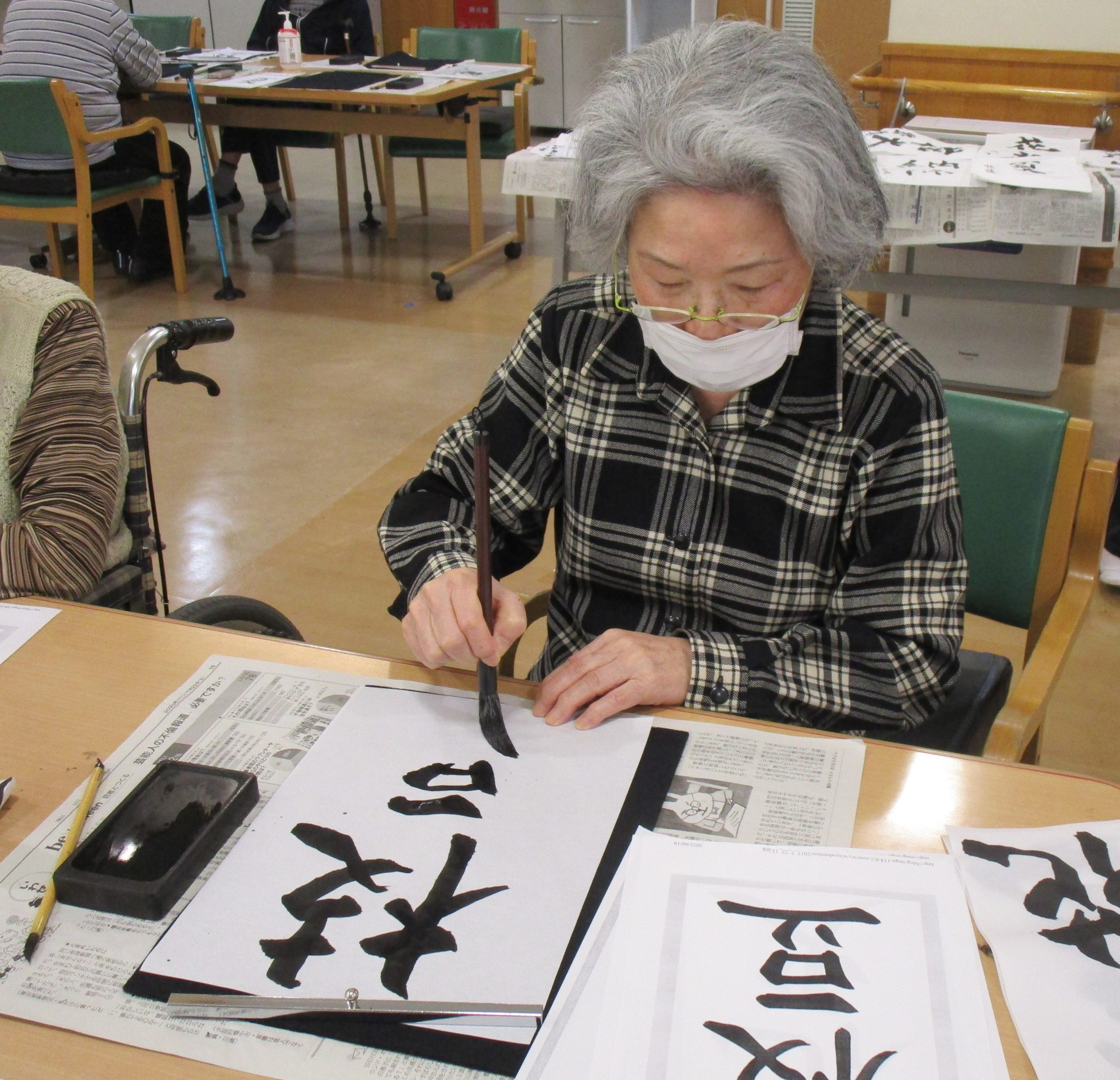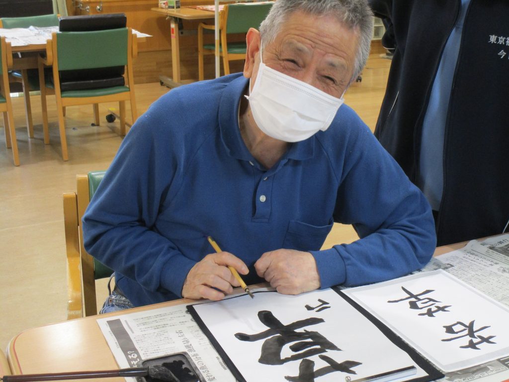 利用者様からは「筆で字を書くのが楽しい。」「お習字なんて久しぶりで懐かしい気持ちになった」と皆様思い思いに、楽しまれておりました。