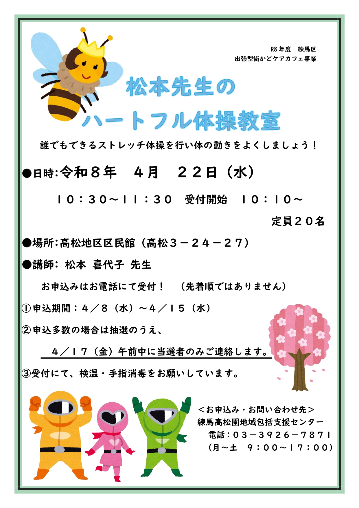4月8日(水)~4月15日(水)のお申込み期間中に、練馬高松園地域包括支援センターにお申込み下さい。