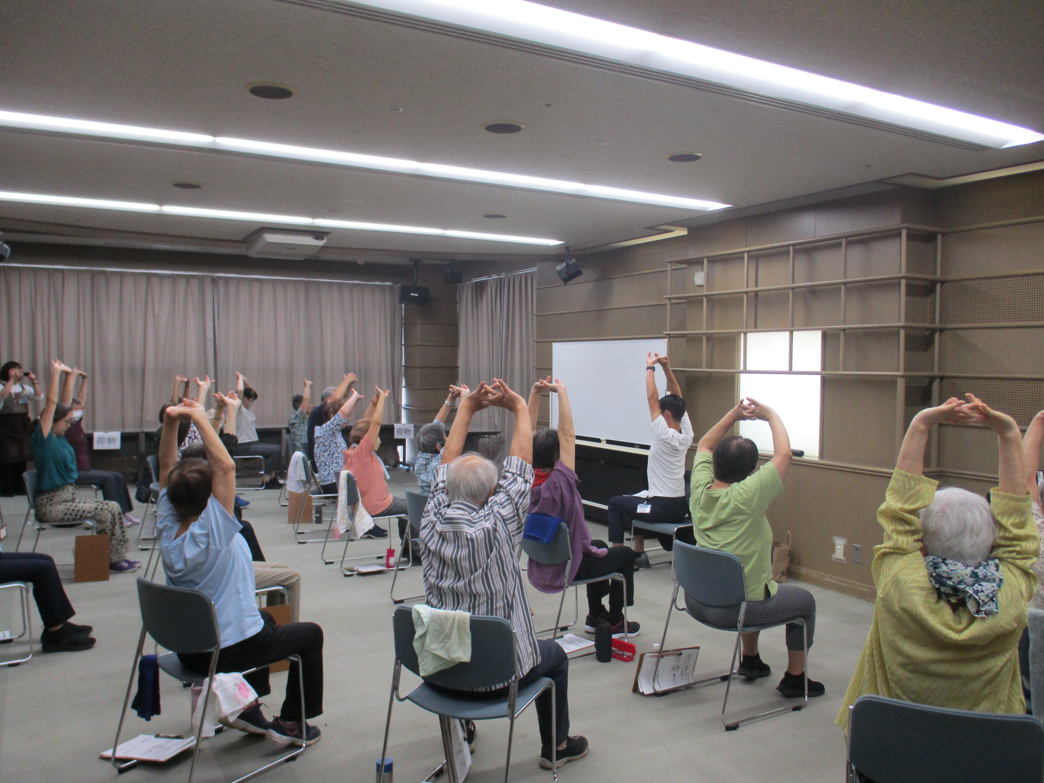 「毎日少しの筋トレから、目指せ!元気で長生き」をテーマに、実技を交え自宅でできる取り組みを教えていただきました。