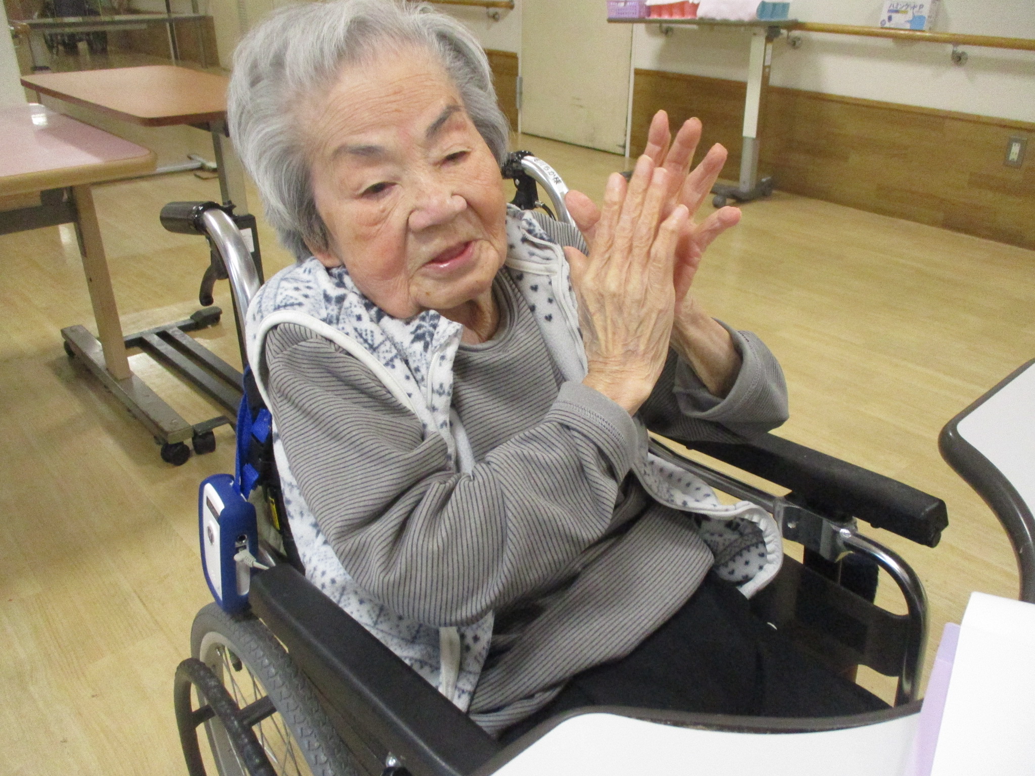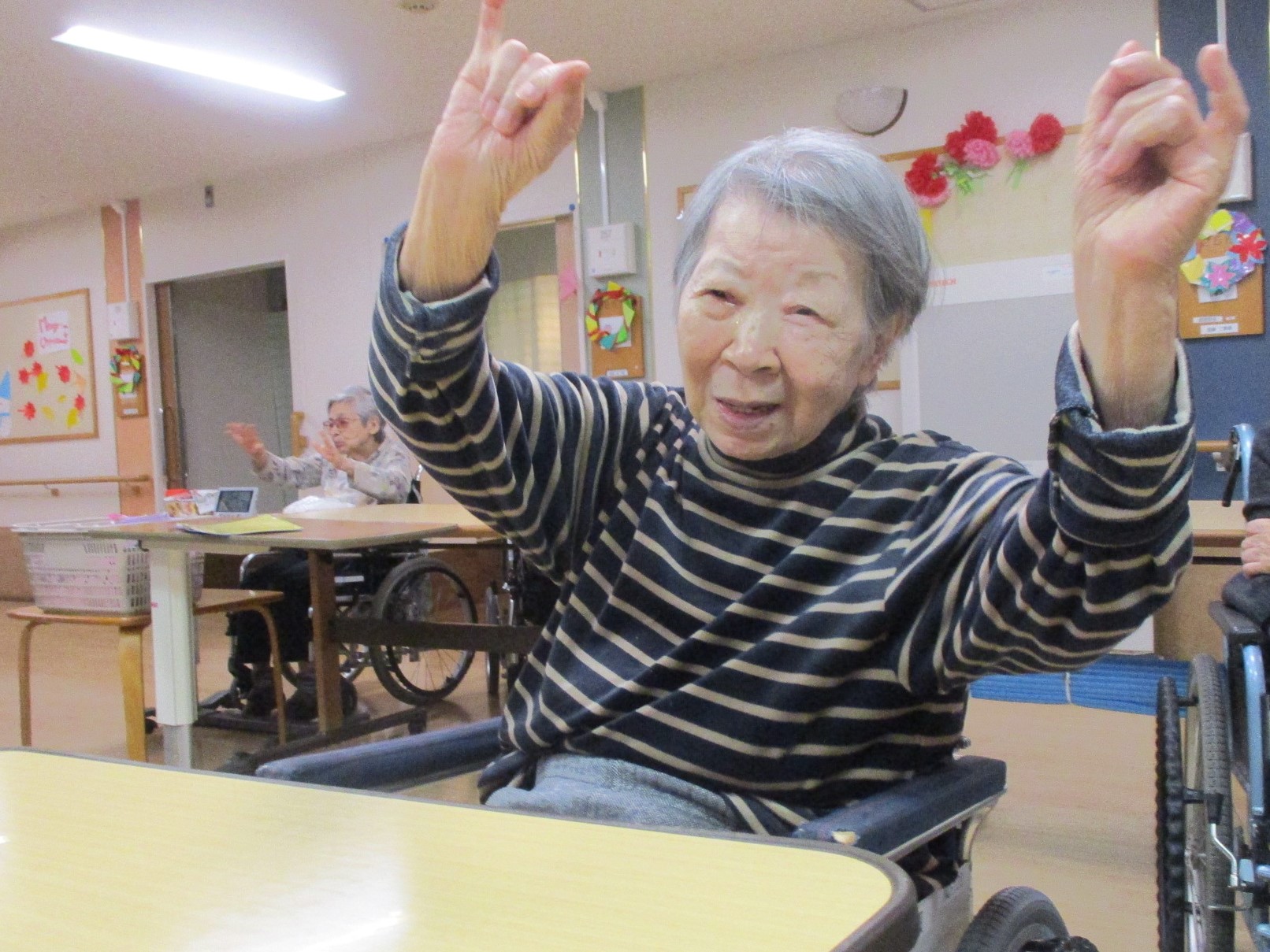 フラダンス風の振付をし、歌ったり、踊ったりと