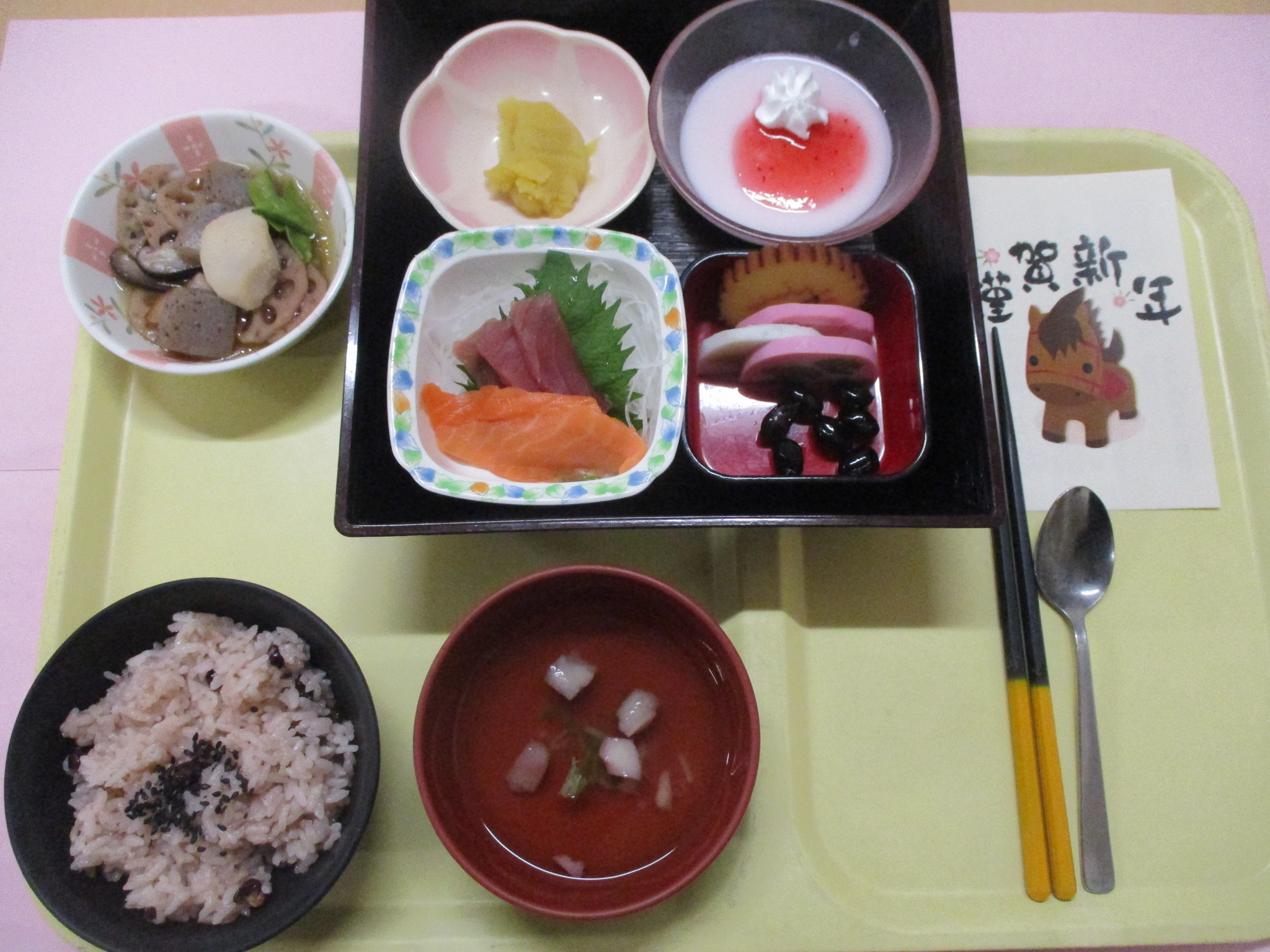 1月1日昼食にお正月祝い膳をご用意しました。