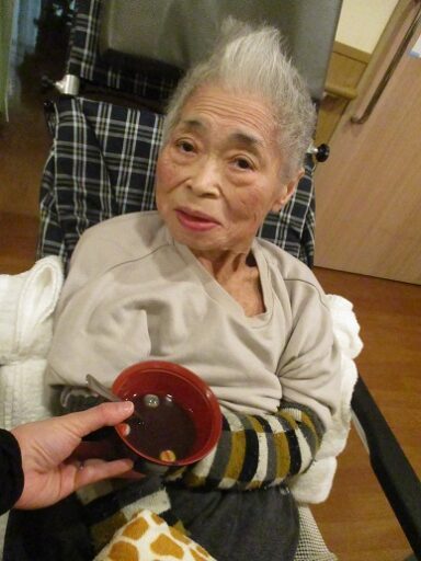 茜・撫子ユニットでは小正月のお祝いとして、お汁粉を楽しむ会を開催しました。 お汁粉の中はカラフルなお麩を入れて見た目にも楽しんでいただきました。 利用者様からも大好評で普段はあまりたくさん召し上がらない方もおかわりを希望されるほどでした。 今後も季節に合った楽しい時間を提供してまいります。
