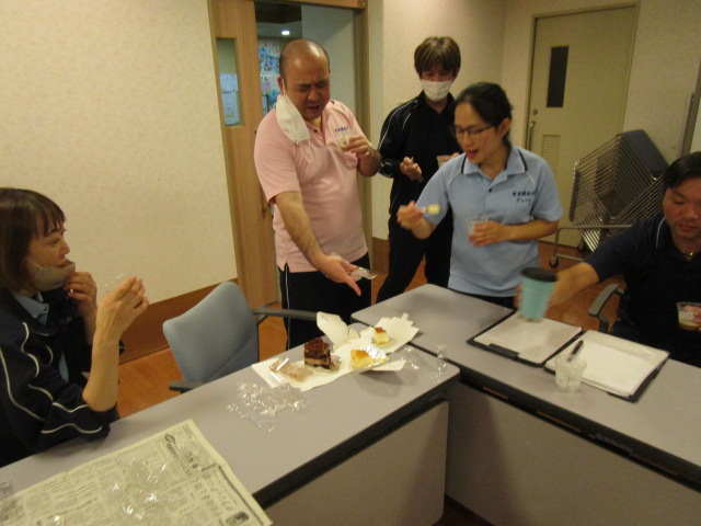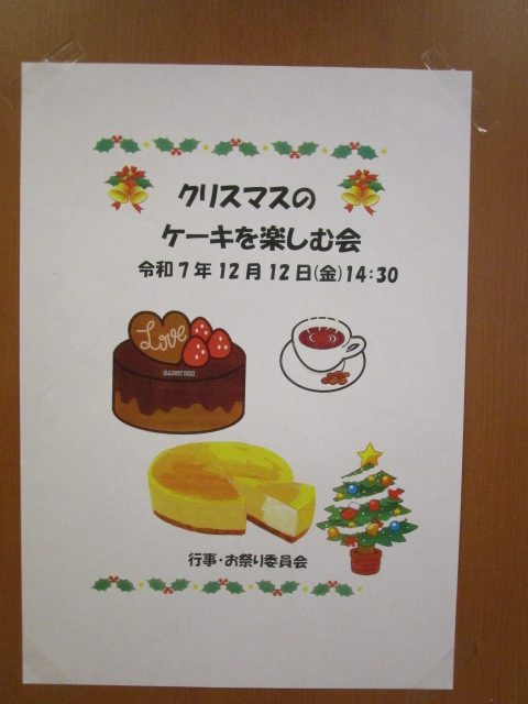12月に入りクリスマスが近づいてまいりました。 当園でも正面玄関をクリスマスツリーなどで飾り付けしました。ご来園時に皆様ぜひご覧ください。 また、12月12日には「クリスマスケーキを楽しむ会」と称してケーキ屋さんから購入し利用者様にケーキを召し上がっていただく企画を予定しております。 職員が利用者様に召し上がっていただくケーキを選定するため試食会も先日行いました。美味しいケーキを当日はお出しいたします。