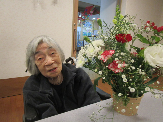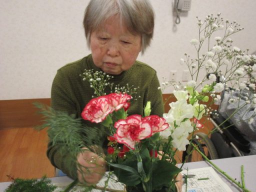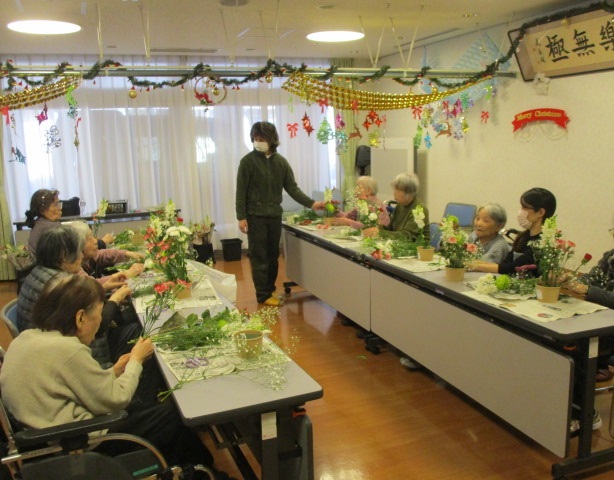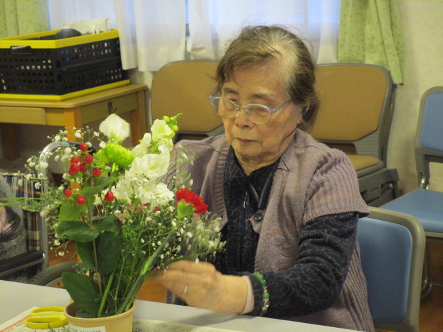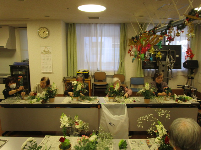 今月のフラワーアレンジメントは20名以上の大勢の方に楽しんでいただきました。 今月のお花は【金魚草】、【洋菊】、【カーネーション】、【トルコ桔梗】、【ヒペリカム】、【スプレーカーネーション】、【スプレー洋菊】、【かすみそう】、【コニファー】、【ヒロム杉】を生けていただきました。 初めて参加される方も何名かいらしゃいましたが皆様真剣に取り組まれていた姿が印象的でした。また来年も皆さんで楽しい時間を過ごしましょう!