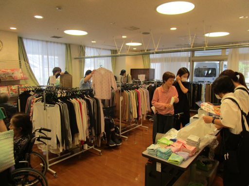 10月29日(水)に食品、夏物衣類の販売会を行います。7月に引き続き今年2回目の開催です。 病院や老人ホームへの出張販売を行っている【ふくまる】様に協力をいただき、第2練馬高松園の1階スペースで10:00~15:00の予定で行います。 実際に商品を手に取って、ご利用者様・ご家族様が一緒に選べる機会ですのでご参加をお待ちしています。 ※写真は7月に開催した販売会の様子です。