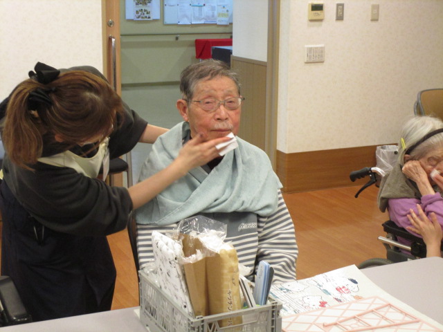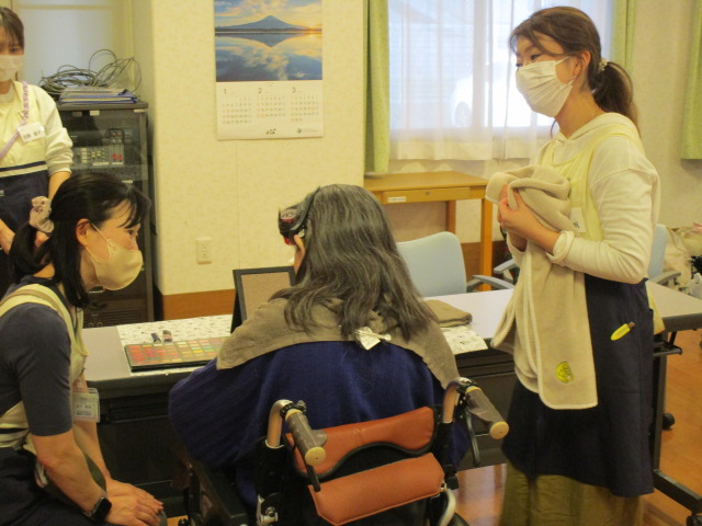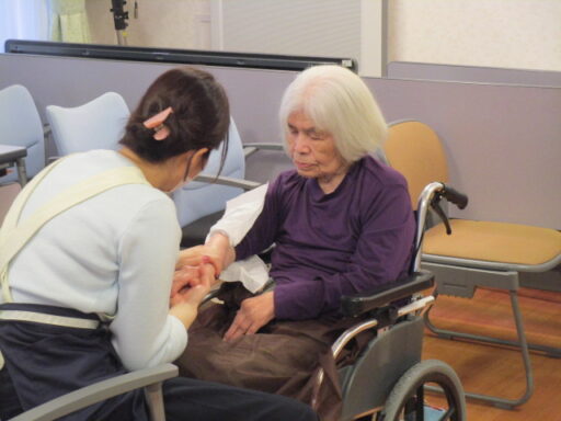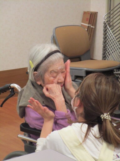 また、数名の入居者様へハンドマッサージをしていただきました。ショートステイの利用者も参加していただき「とても気持ちよかったわよ」と笑顔で感想を伝えてくださいました。