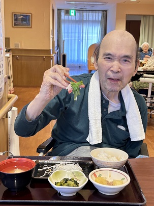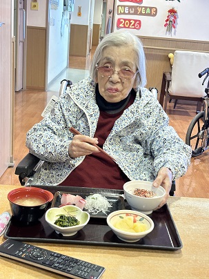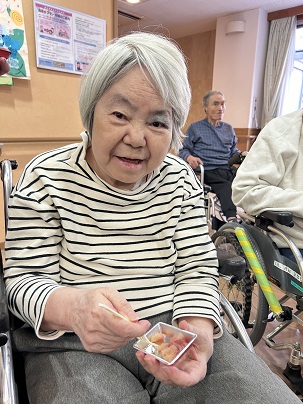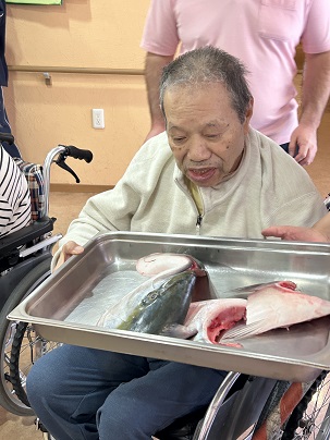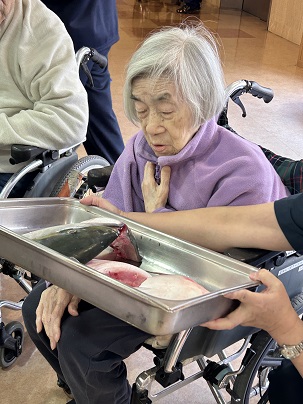 大好評でした新年会の鰤の解体ショーでの柑子・黄水仙ユニットの入居者様のご様子をお伝えします。