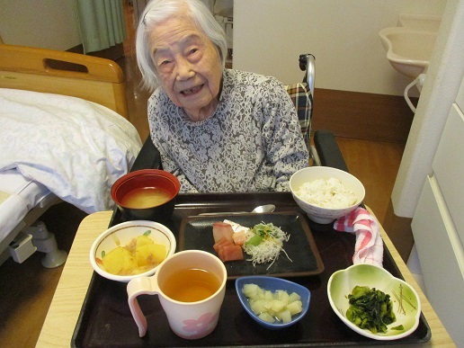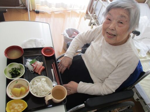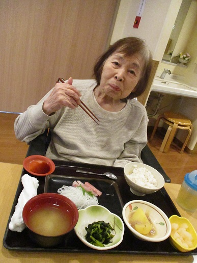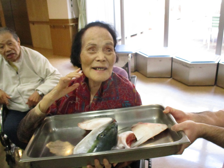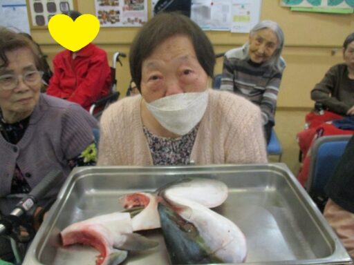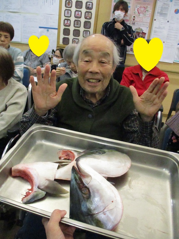 大好評でした新年会の鰤の解体ショーでの茜・撫子ユニットの入居者様のご様子をお伝えします。