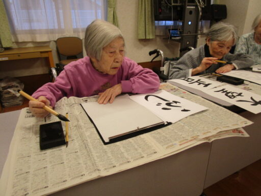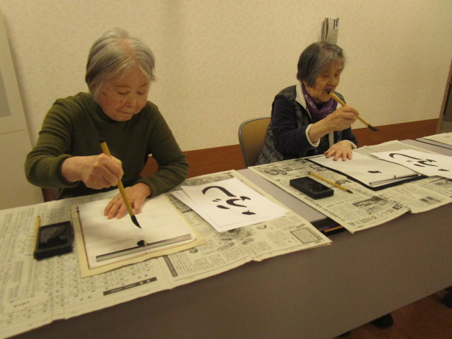 令和8年最初の「書を楽しむ会」を開催いたしました。午年のお正月にちなんだ字を参加者の方に書いていただきました。