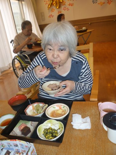 9/14(日)の敬老の集いでの式典後の各ユニットでの様子をご紹介いたします。今回は2階の柑子・黄水仙ユニットです。