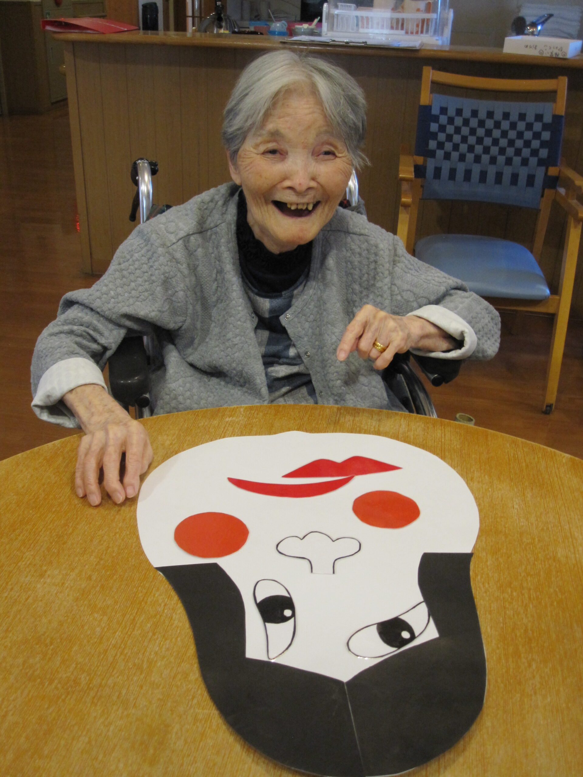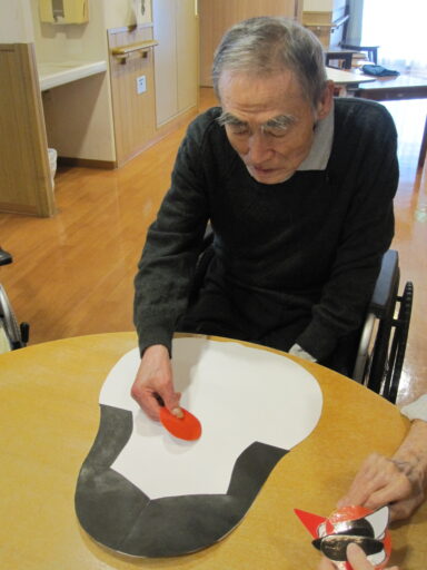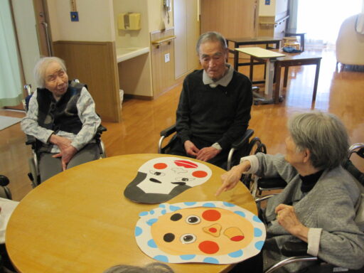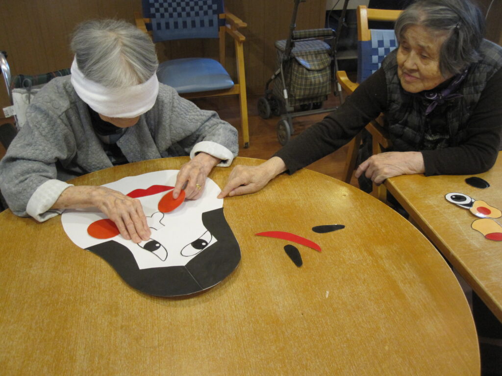 瑠璃・紫苑ユニットではお正月らしいレクリエーションとして福笑いを楽しんでいただきました。