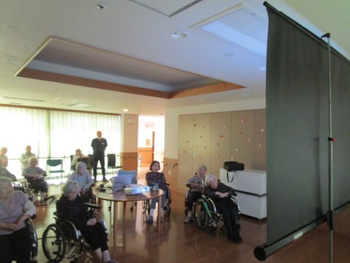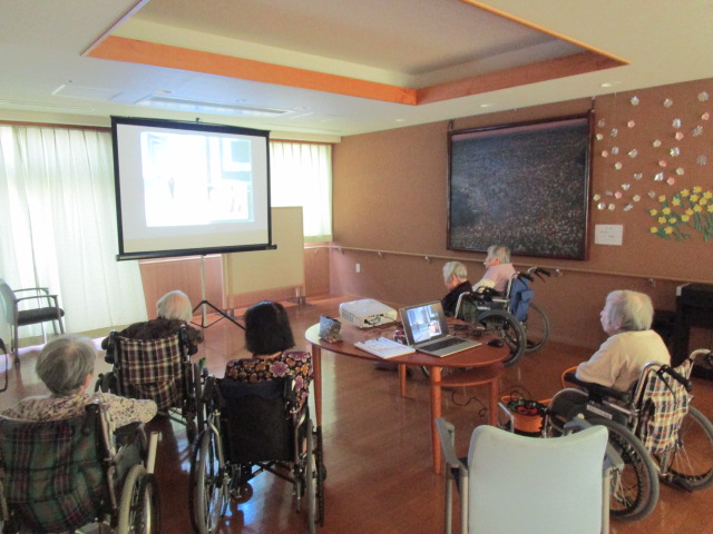 第2練馬高松園では月に1度「懐かしい音楽を楽しむ会」というイベントを開催しております🕺 今月も入居者の皆さんに馴染みのある歌を映像とともに楽しんでいただいています🎤 映像を見ながら「高原列車は行く」、「東京だよおっかさん」などを楽しそうに歌を口ずさまれていました🎷