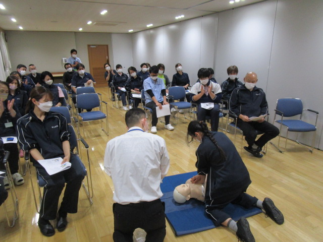 東京福祉会高齢部門ではBLS (Basic Life Support 一次救命処置)の研修を第3練馬高松園で行いました。 講師として協力病院である浩生会スズキ病院の方に来園していただきレクチャーしていただきました。 講師の方のお話は分かりやすく、胸骨圧迫といった心臓マッサージの実技やAED(自動体外式除細動器)の使用方法、窒息時の対応などについて教えていただきました。 浩生会スズキ病院様、ありがとうございました。