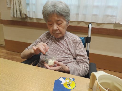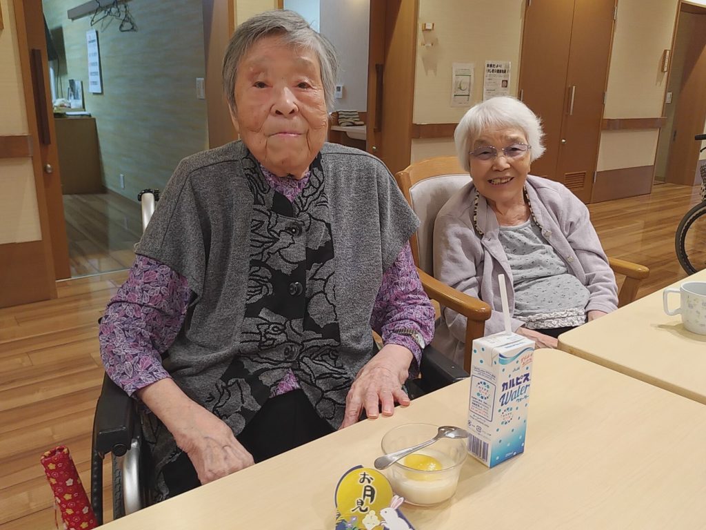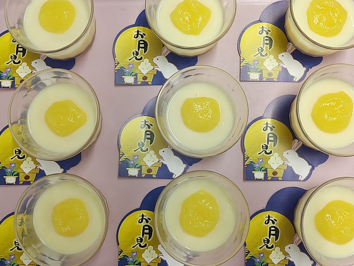 10月6日が中秋の名月ということで おやつに「お月見ババロア」を提供しました。 バニラババロアの上に黄桃の缶詰のペーストをのせていますが、 皆様に何の味がしますか?とお聞きすると 「なんだかわからないけれどおいしい!」とのことで あっという間に完食しておりました。 また、お月見のポップを見て秋を感じていただきました。