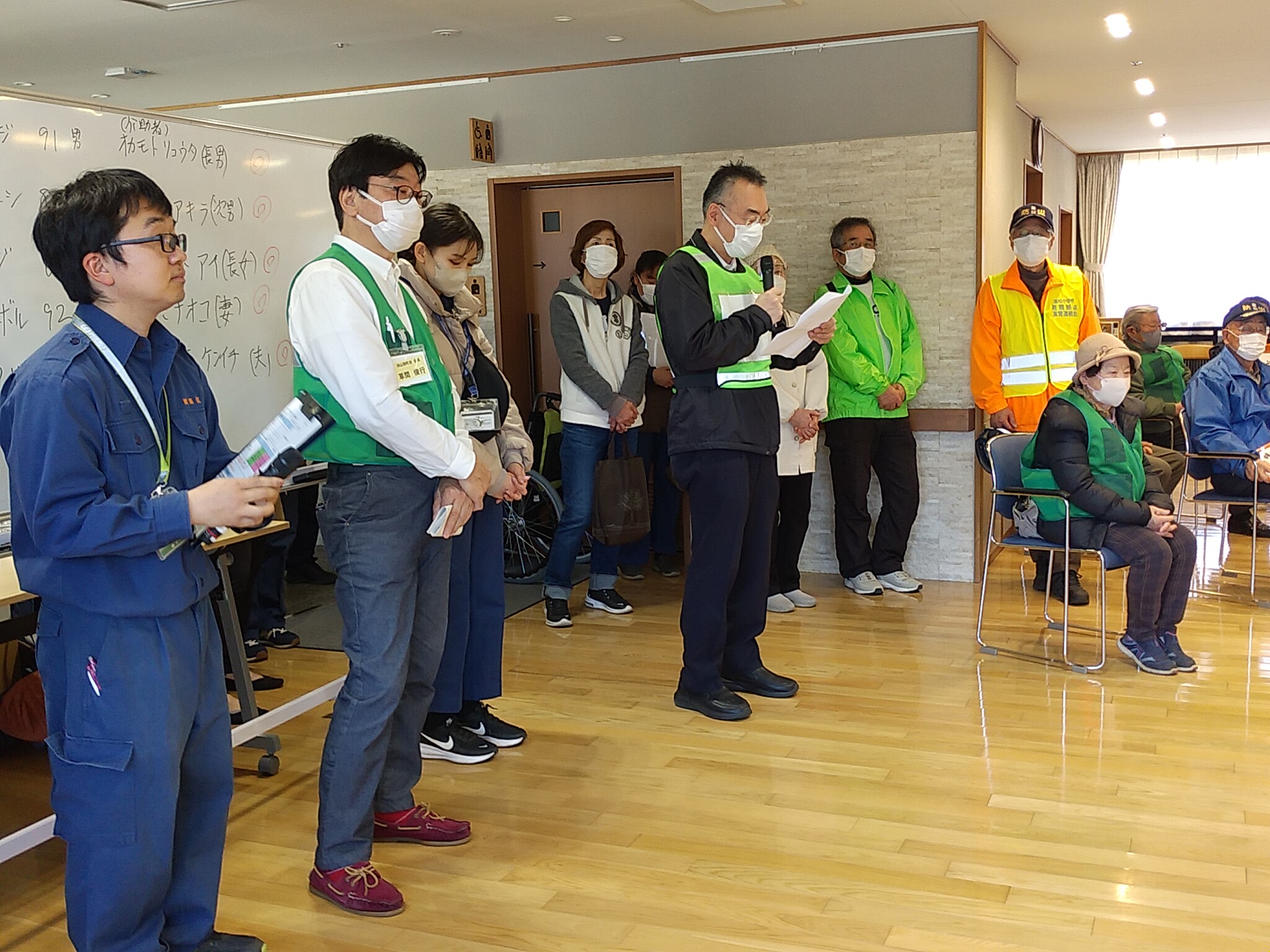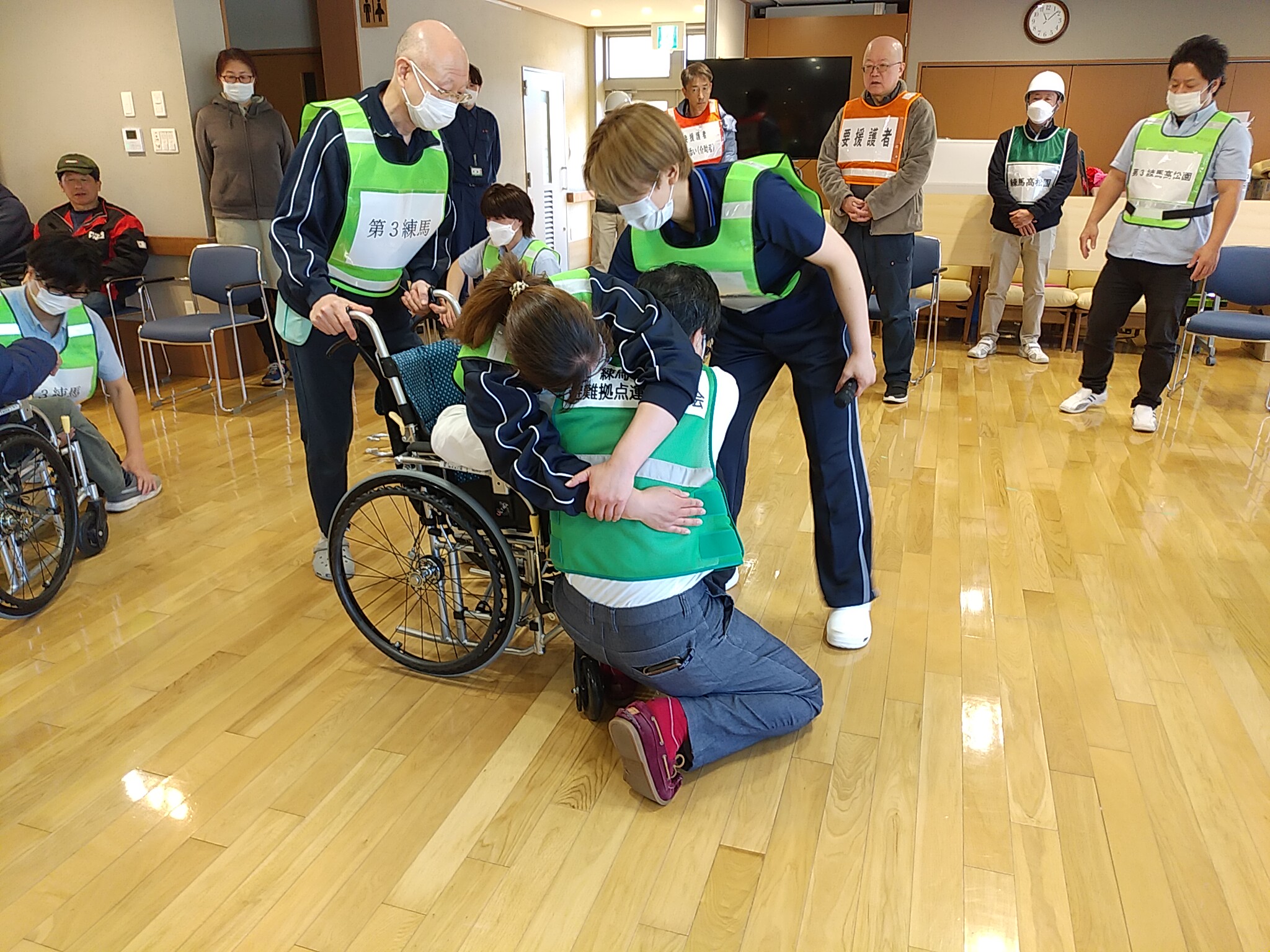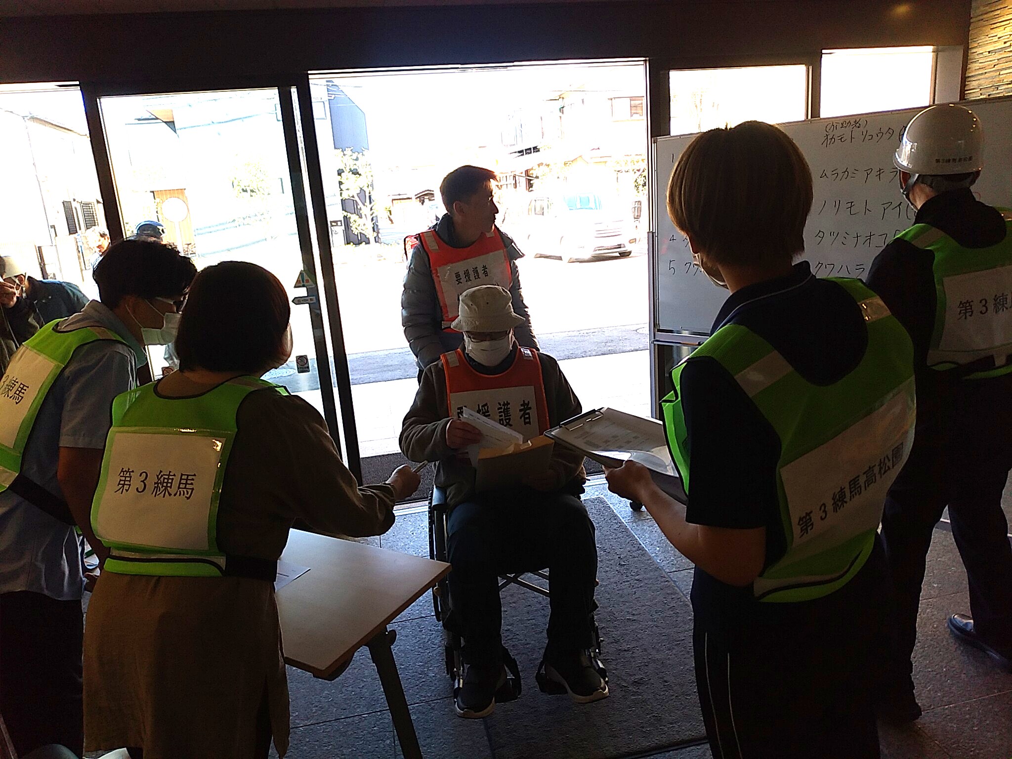 今回は、災害時に練馬中学校に避難してきた方のうち要配慮者を第3練馬高松園で受け入れる訓練を実施しました。